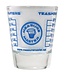 General purpose measuring shot glass. Graduation measurements include teaspoon, tablespoon, ounces and milliliters. Clear glass for easy and accurate measuring. Glass printed in the USA using baked on specialty ink. Packed in display box. Read more..